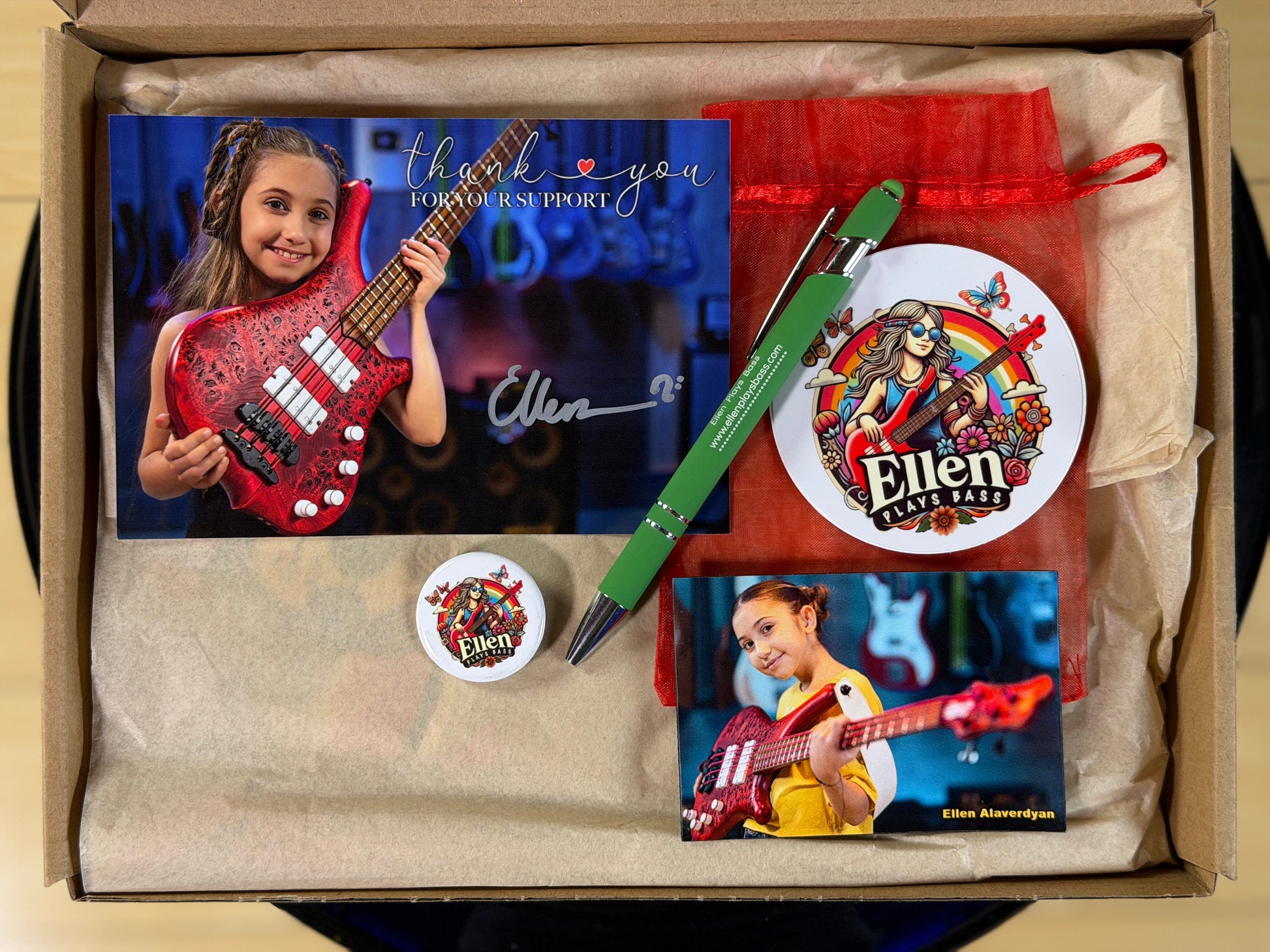 This "limited Edition" package is put together personally by Ellen, and it includes a signed photograph of Ellen, a magnet, a pen, a button, and a sticker with this limited design. This will be limited to only 100 units, so this is your chance to get something very special.